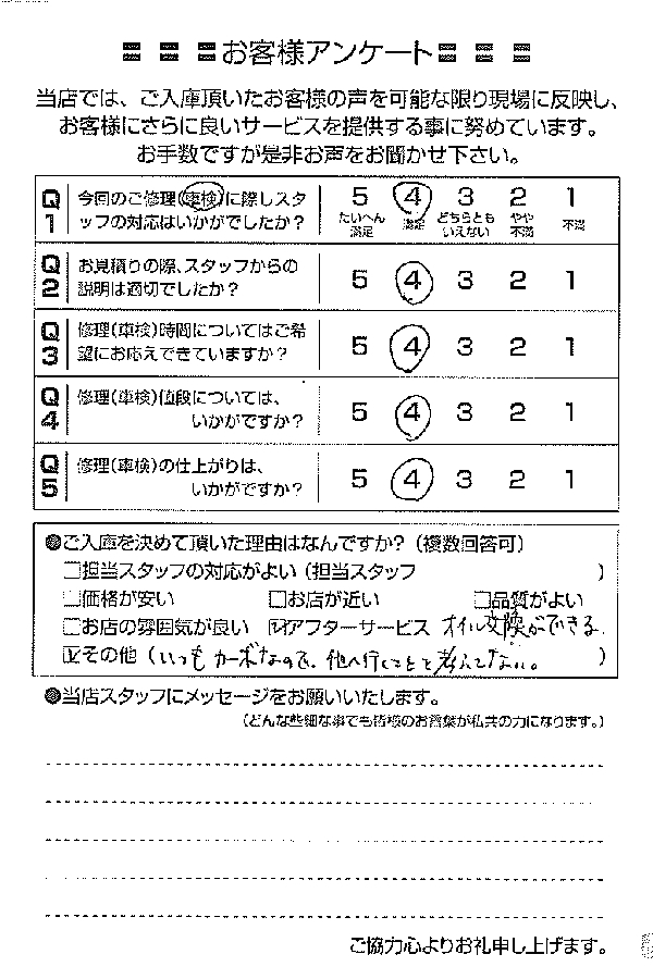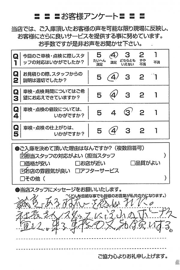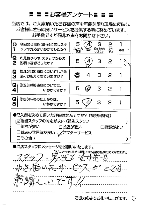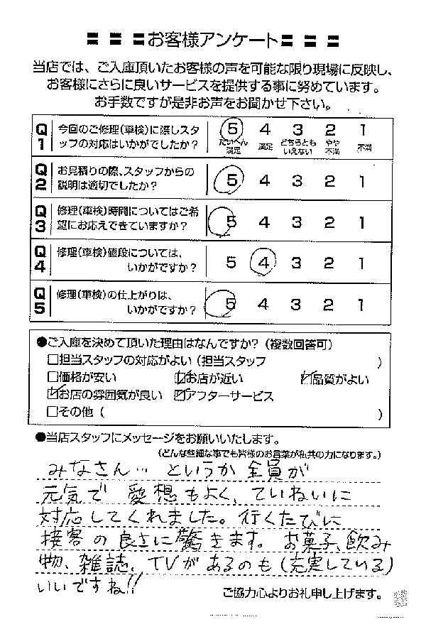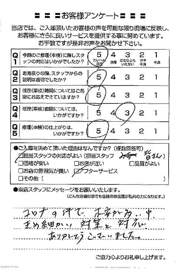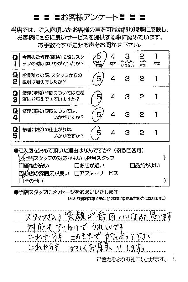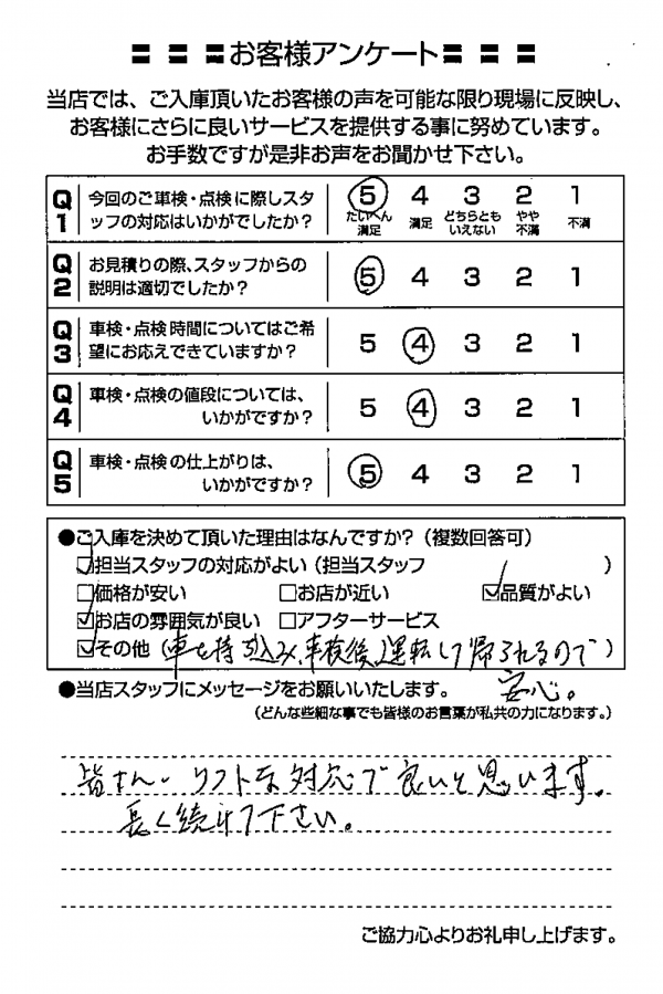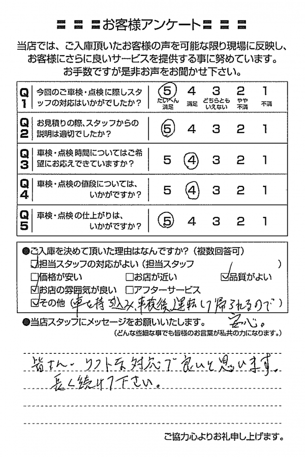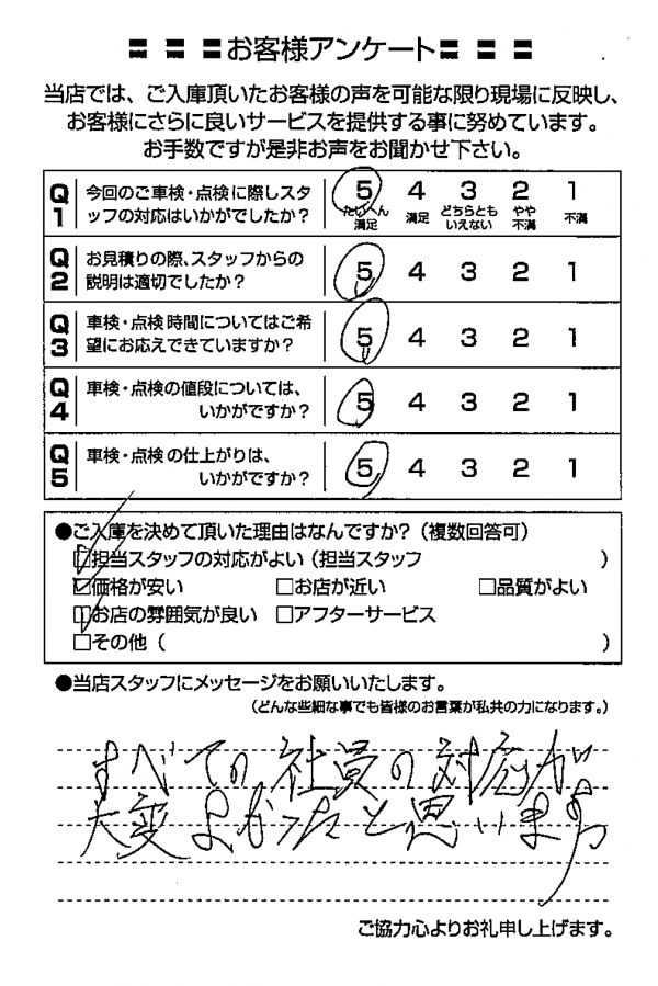 整備の方が明るくて親切でした。 N様 |