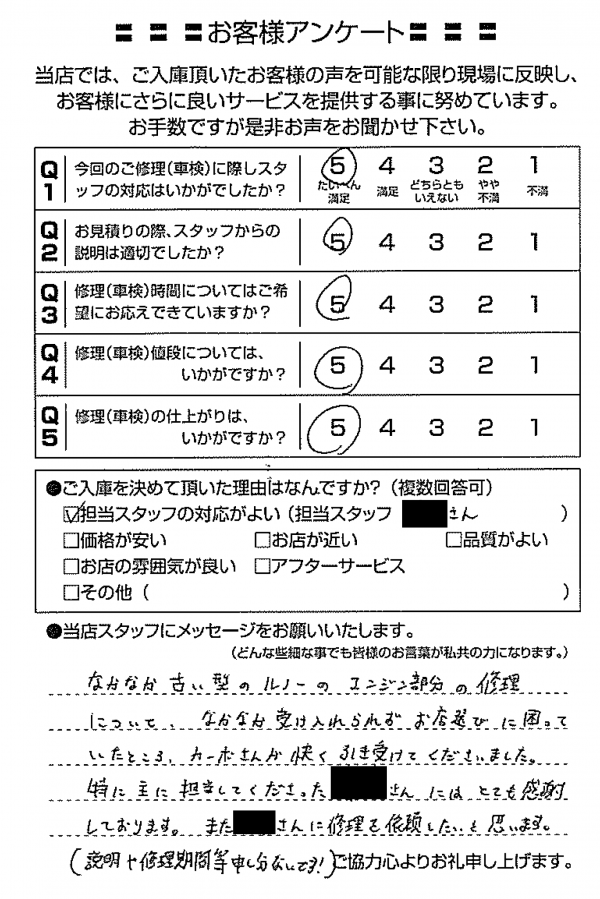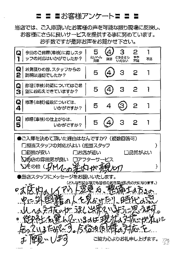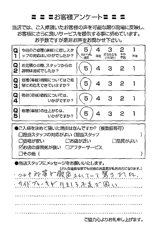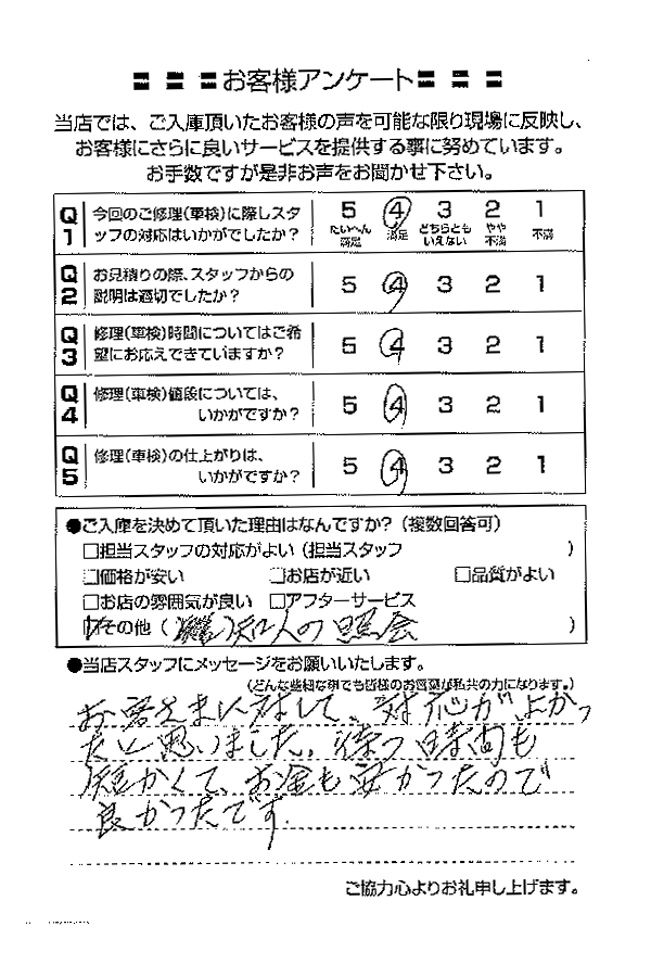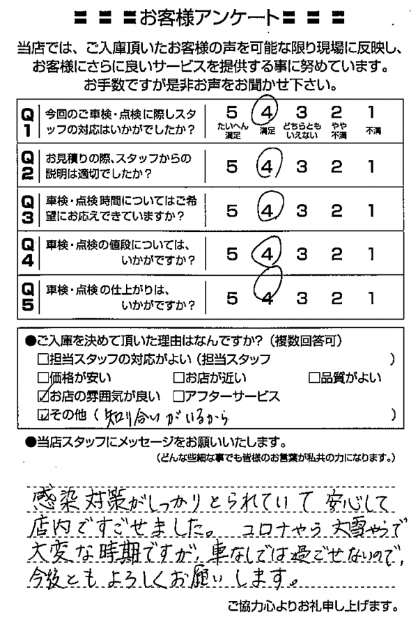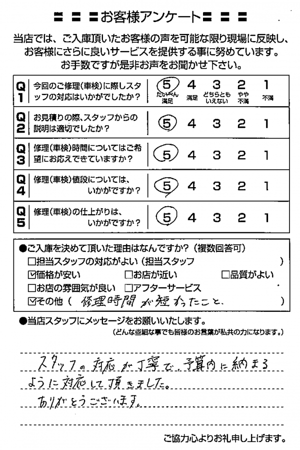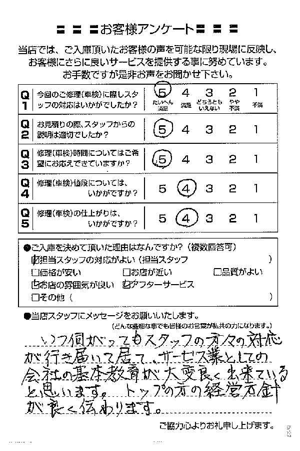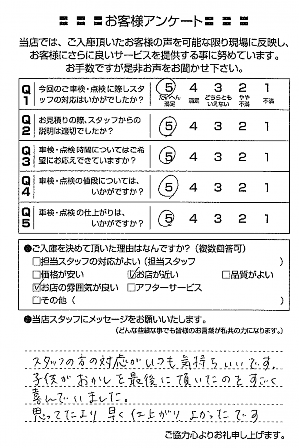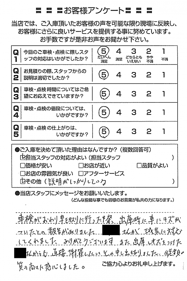 整備の方が明るくて親切でした。 N様 |